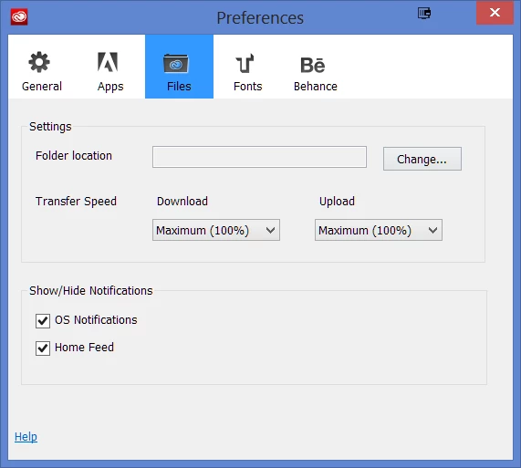 Note below that the folder location is empty. If I try to change it, Creative Cloud says it is moving the folder, but it hangs. I restart, but nothing changes.