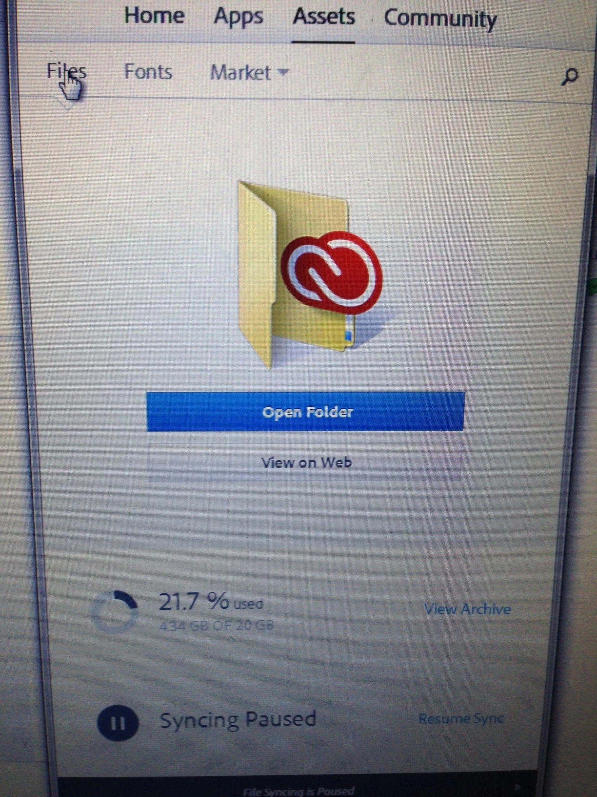 I find that when I tries to sync CC to the net it slows the internet speed right from 10mbps to .2 mbps and I have a problem using web browsers as I get a no connection to internet but the system icon shows connectivity and my cc download status still remains at 21.7% used 4.34GB of 20GB, for hours. I have to select pause sync in cc to get the internet speed back. Another thing I should mention is that I can still get download app updates from the cloud, but ONLY syncing is a problem