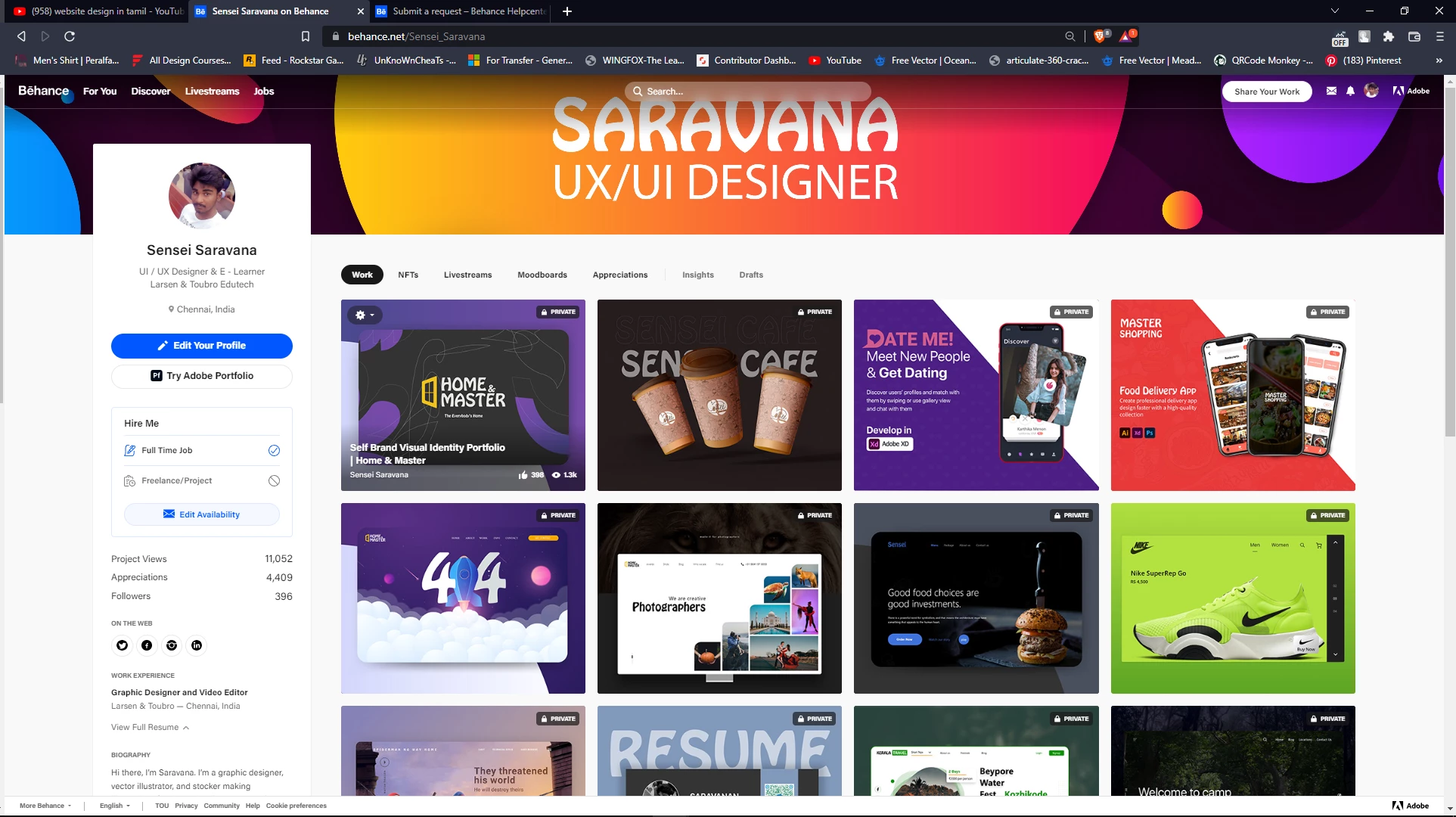 Another problem is that due to this privacy, my account isn't visible to anyone anymore, it's like my account got deleted. When I search my username's link on another browser, it says that the page is not found as I will also show in the screenshots. When I checked again today, my project views (that were 426) and appreciations (17) decreased in number as seen.
