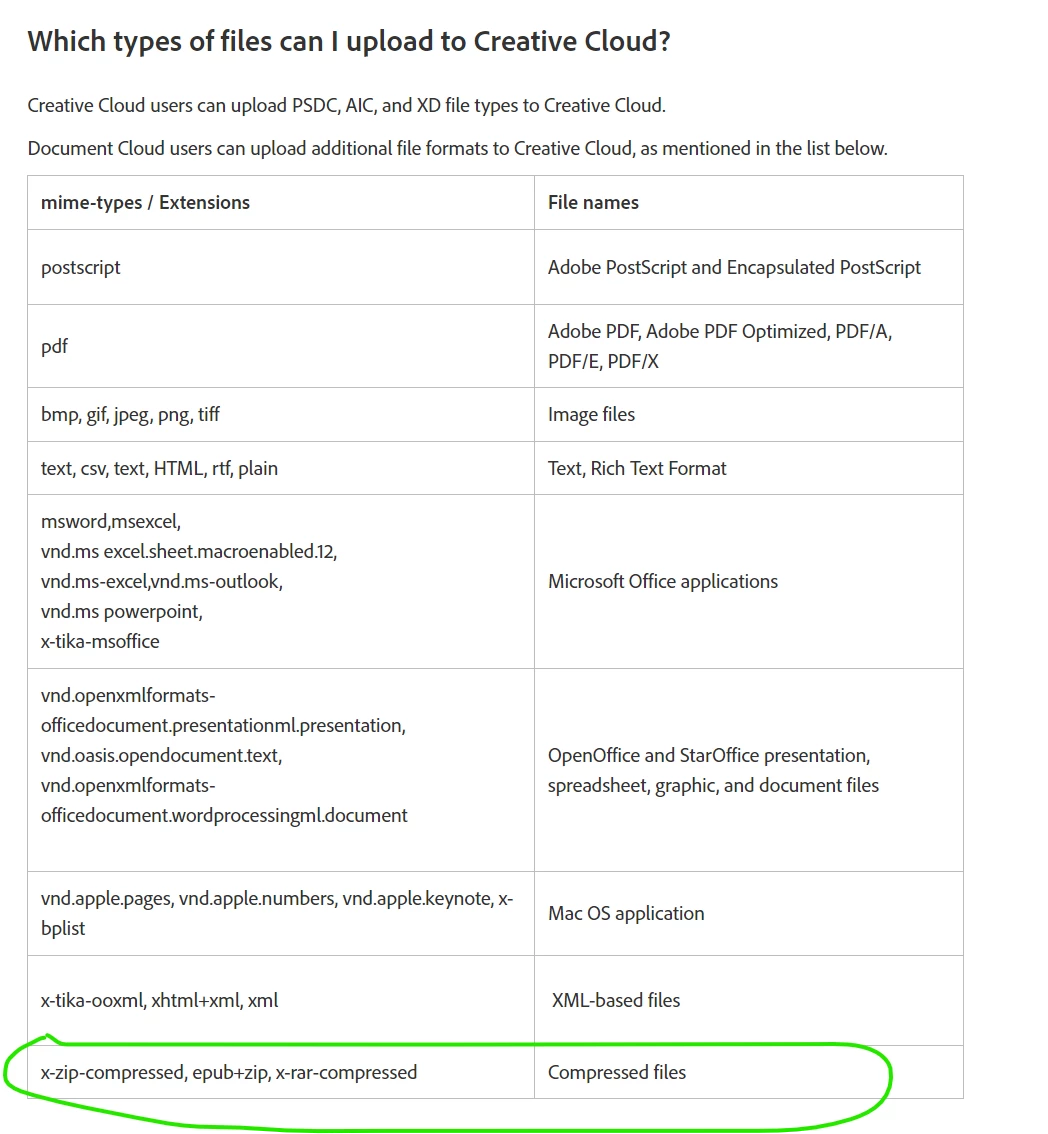 In official Adode documents there is possibility to upload ZIP files to Creative Cloud- here is the link - see table