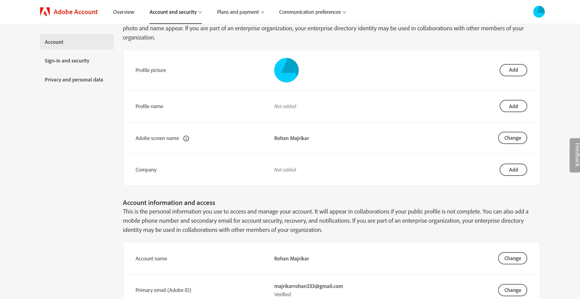 and my name has somehow changed into defaultt9o4vjv5ij23. which is not my adobe name.