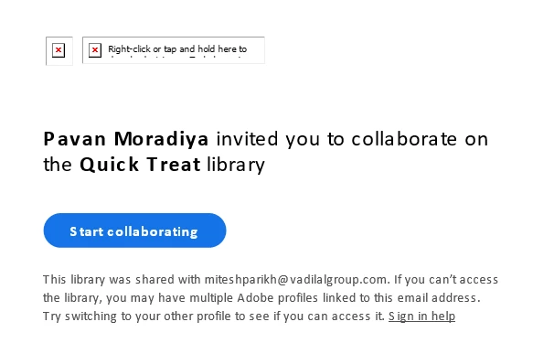 At my workplace, we have a design team of four people. We share an email address for Adobe Libraries so we can access them in Illustrator and Photoshop. However, one of our team members is unable to access the shared library. Although he receives the confirmation email with the "Start Collaborating" link, when he clicks on it, he is unable to join the libraries. What could be the issue, and is there another way to resolve this problem?