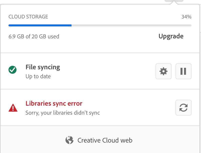 Ensure the drive containing the operating system has sufficient disk space for temporary files and any files you wish to use within Creative Cloud libraries.