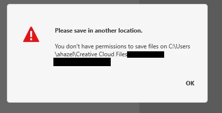 You don’t have permission to modify files in this network location -error when trying to save as to Creative cloud
