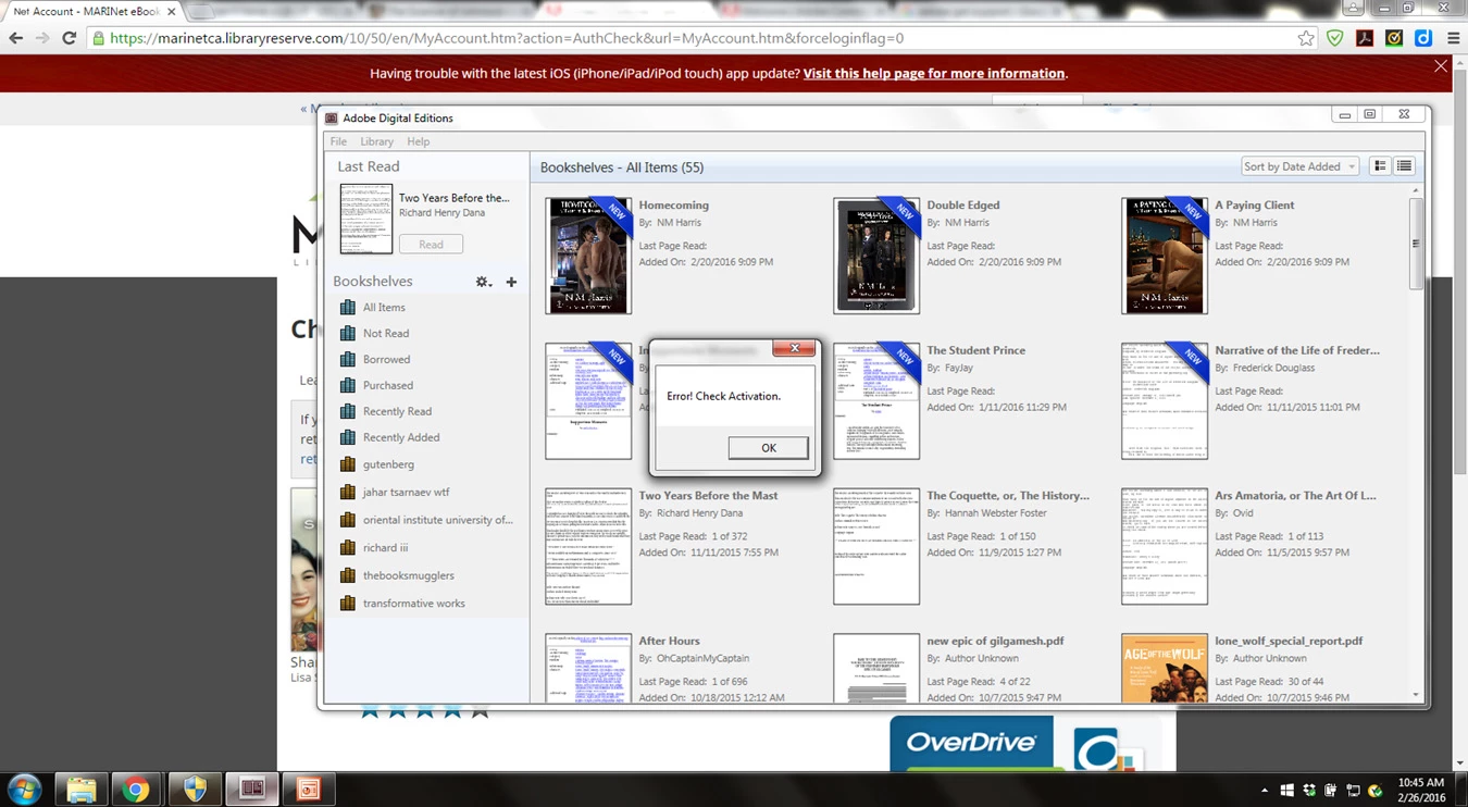activation error when downloading books