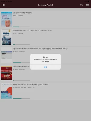ADE doesnt work on iPad. “Book is no longer available in the device