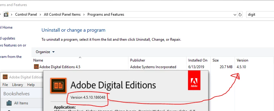 Adobe Digital Editions v4.5.10.186048 is detected by Nessus as being vulnerable for APSB19-16, in plugin 122815. This is because ADE is not correctly updating the Windows Registry with the full version string during installation, and Nessus is relying on the information reported in the registry to be correct.