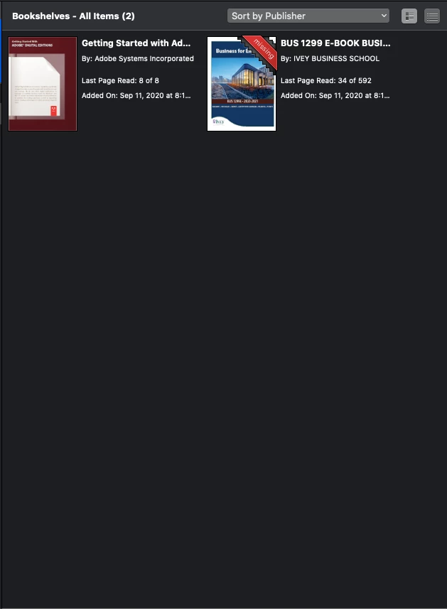 Adobe Digital Edition - Missing PDF