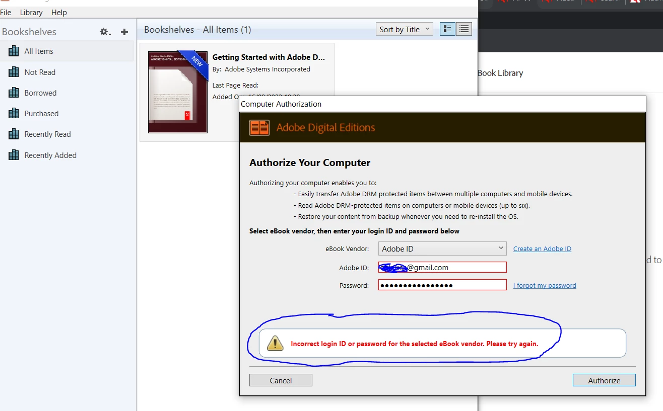 I have an adobe account and then I installed the app to my computer. In some reason I cannot authorize my account. I tried changing the vendor from Adobe to Google but still nothing. It gives this error message: