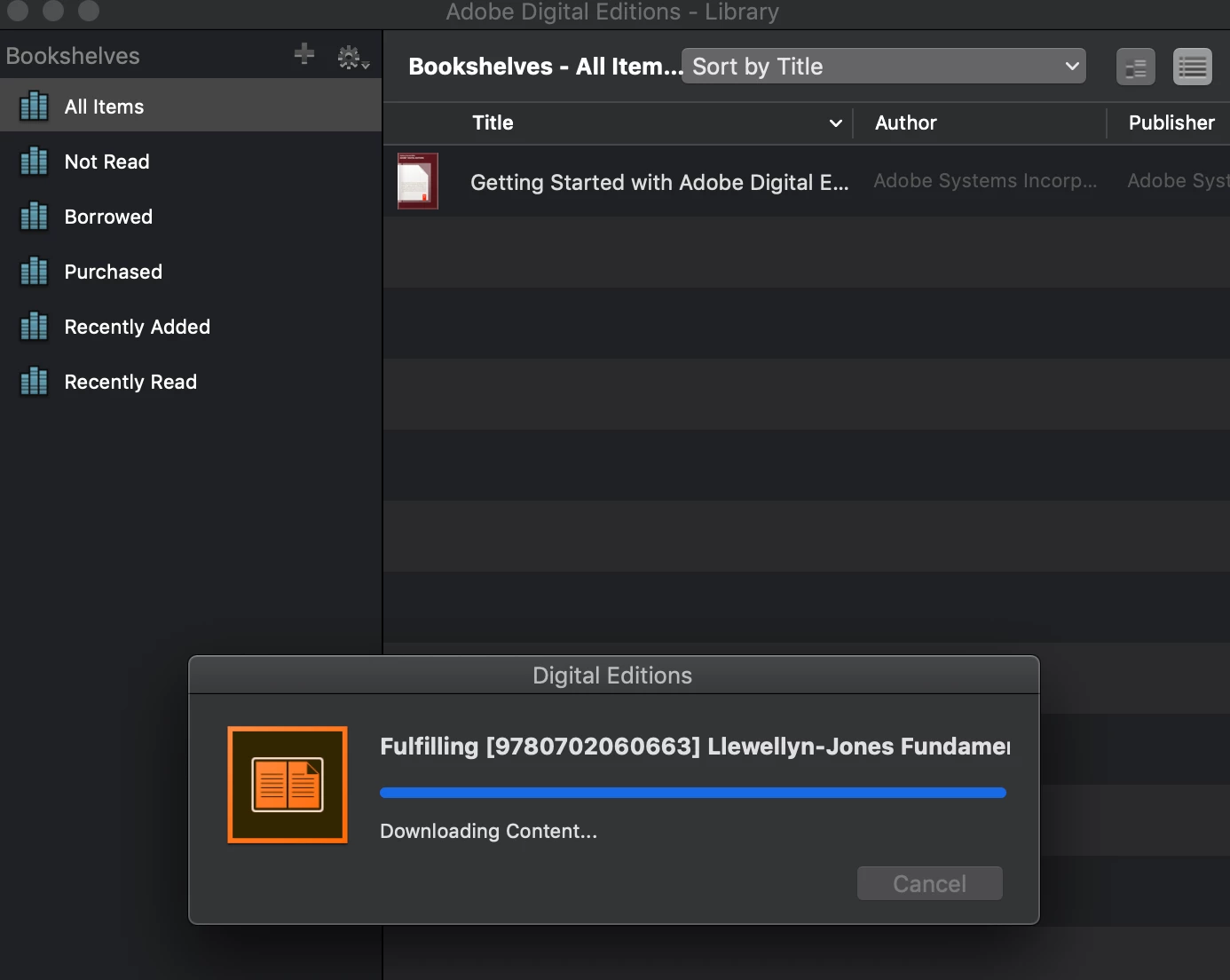 Adobe digital editions stuck on 'downloading content' when adding acsm file to library