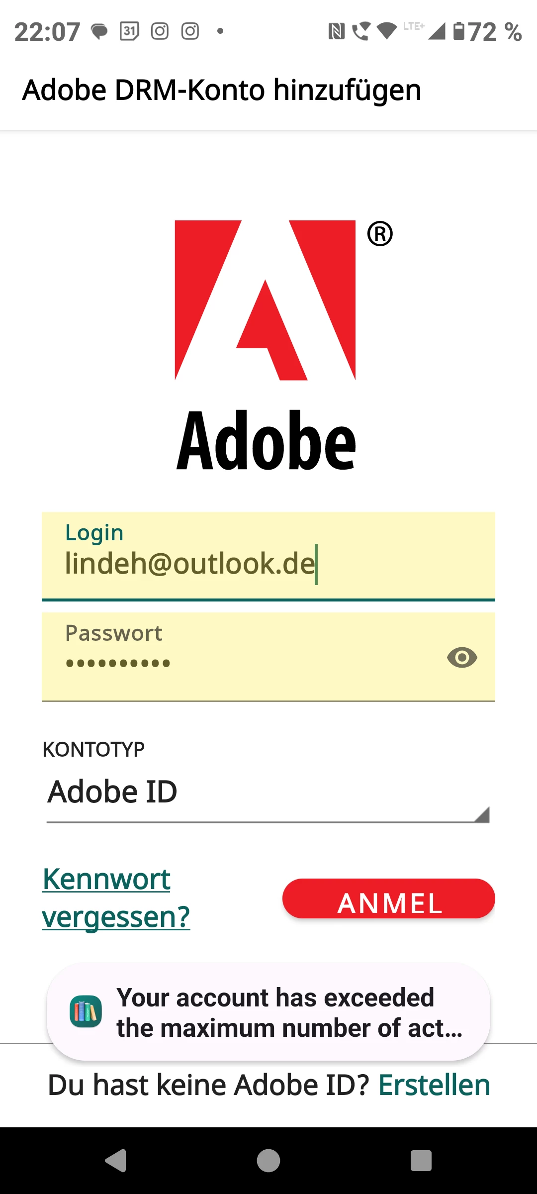 seit einigen Wochen komme ich nicht mehr in mein Adobe DRM Digital Konto. Wenn ich versuche, ein Buch zu öffnen kommen die Meldungen, die ich als Anlage sende.