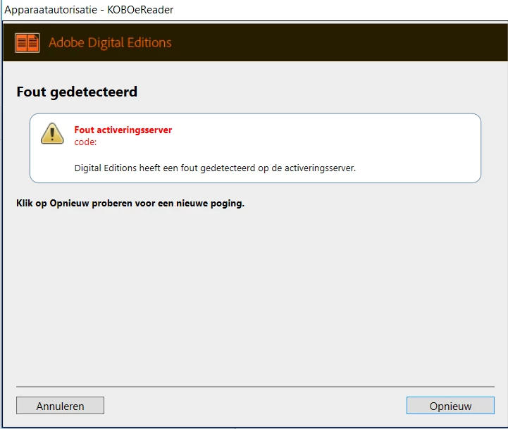 Authoristions of E-reader 2: Fault activation server, without a code.