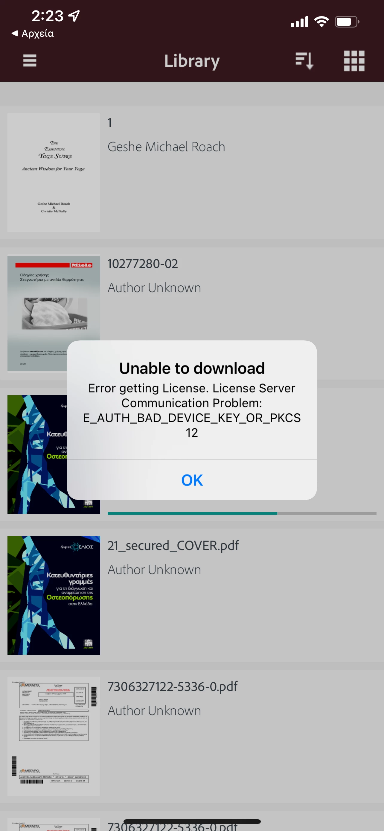 I have a problem lately. I can't open the files in the app. I have already done the deauthorising and again authorising trick. My screen shows that. Any ideas?