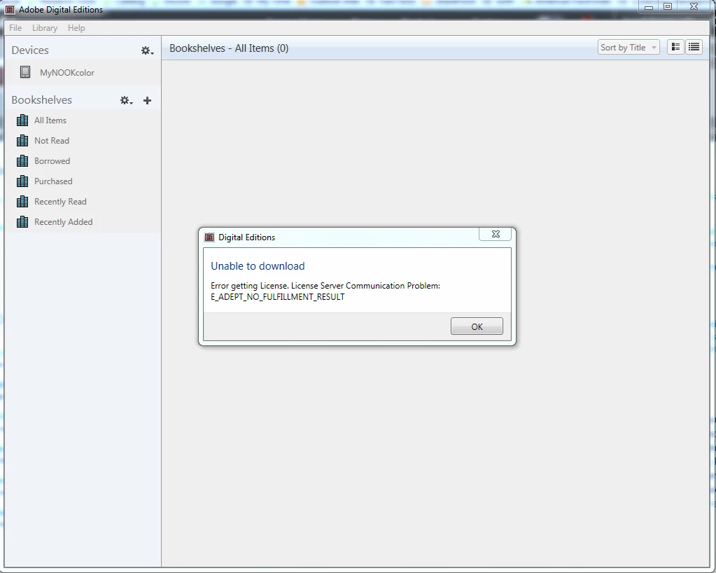 I download the file, open up digital editions, try and open the file with my authorized version of digital editions and I get this error: