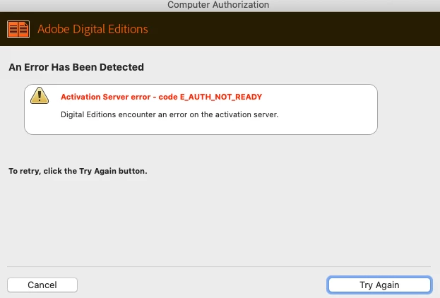 Trying to read a purchased ebook, ACSM format, which on a Mac OS can only be opened/converted with ADE.