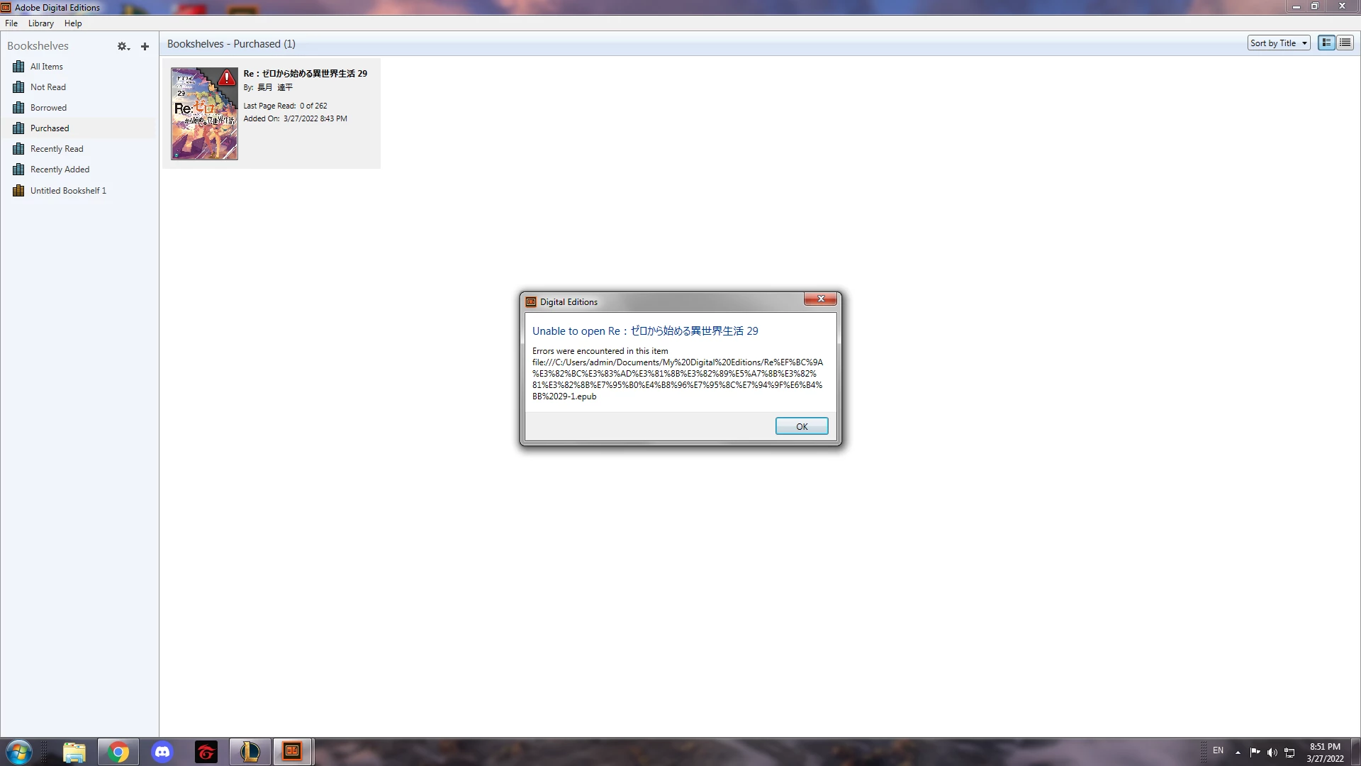 I buy this book on google play books and export as acsm file to read in digital edition , i finished the import to digital edition but for some reason when i choose read it give me a notification about cant open and the book have a big red explanation mark in the corner