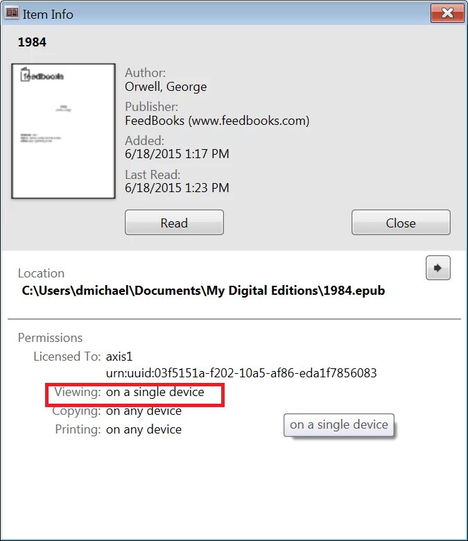I see my epub book in ADE Library. I see my KOBO-Touch e-reader recognized by ADE. Although the right click in the book item gave me the option of copying to Kobo e-reader I get an CE_COPY_NOT_ALLOWED.