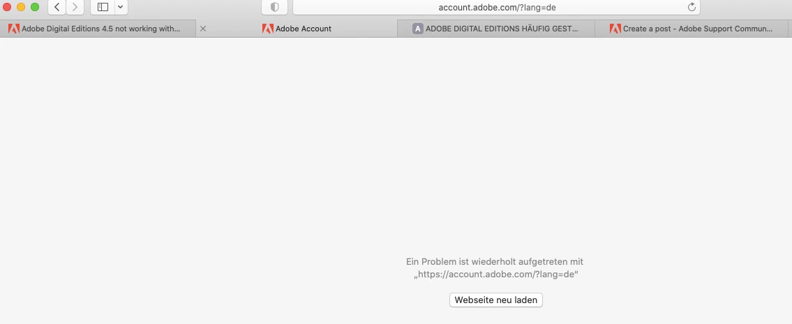 Ich habe dann versucht in meinem Adobe Konto einzuloggen, was auch geklappt hat, wenn ich jedoch auf "Konto anzeigen" klicke, bekomme ich diese Fehlermeldung: