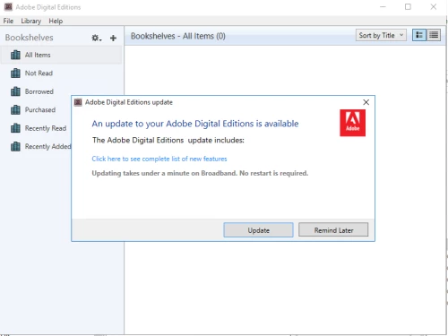 Adobe Digital Editions 4.5.11 updates automatically.