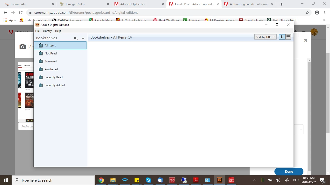 It also seems like I can't authorize my eReader on ADE. ADE doesn't recognize it when plugged in.