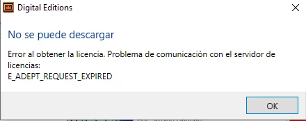 In the computer with a date, hour and time zone when the ebook was bought and adobe sesion with set in adobe digital edition software, when i try to download ebook i get the error E_ADEPT_REQUEST _EXPIRED
