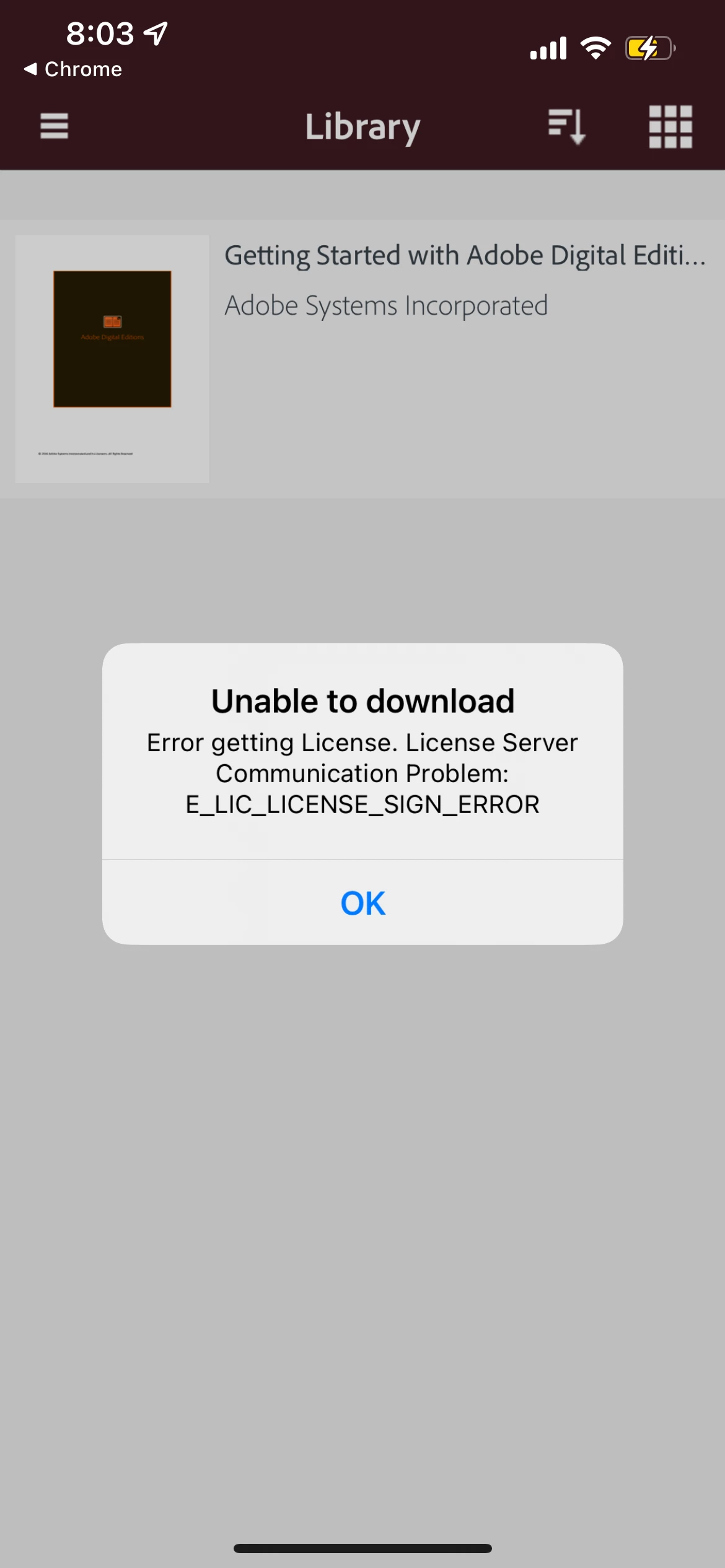 I've bought an ebook from Avid and it said I should download Adobe Digital Editions and open my ACSM ebook there. I'm getting this error when I try to open it. It's happening both on my Mac and my iOS app. I tried to contact both Adobe and Avid and neither of them could help me with this error. Does anyone know what's happening and what I should do to fix it?