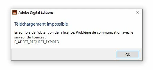 impossible d'ouvrir un fichier ACSM . Un message d'erreur s'affiche .Voir ci joint. Si quelqu'un a une idée merci d'avance  !