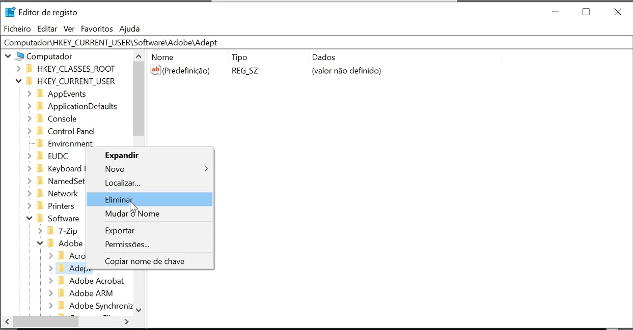 A solução foi eliminar as credenciais de acesso pela chave de registo. (sem ser como administrador)