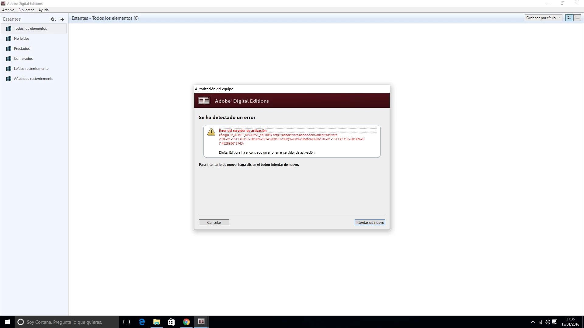 error del servidor de activacion. E_ADEPT_REQUEST_EXPIRED-M e da error.