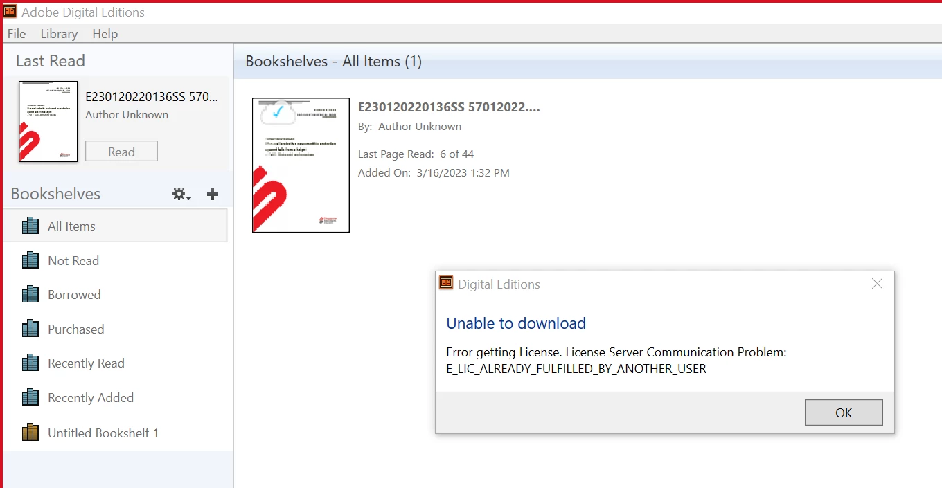 While opening the document in Adobe Digital Editions 4.5.11 getting below error. How to resolve this error?