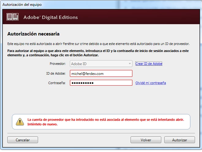 he comprado unos libros en kobo, adobe digital edition no me deja verlos, cada vez que pruebo me sale una pantalla pidiéndome el ID del proveedor