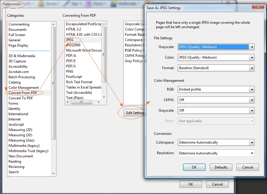 Also, go into Acrobat Pro's Preferences to configure the PDF to JPEG to meet your needs.