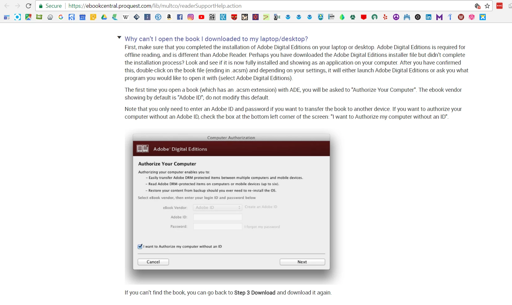 I downloaded Adobe Digital Editions for Windows to access electronic library books on my Windows 10 desktop, thinking that since it's an Adobe product, it will be smooth and intuitive and work as advertised. I followed the library's How-To and selected "I want to Authorize my computer without an ID"...
