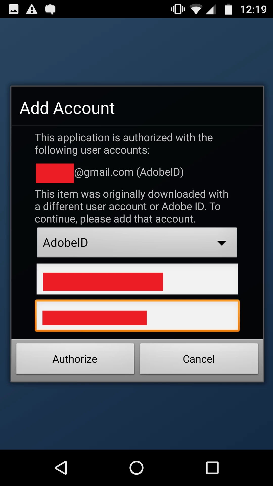 Whenever I try to view an ebook using another reader (Bluefire Reader), I get a prompt asking me to add my Adobe Account to be able to view it.