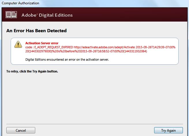code:E_ADEPT_REQUEST_EXPIRED http://adeactivate.adobe/adept/Activate