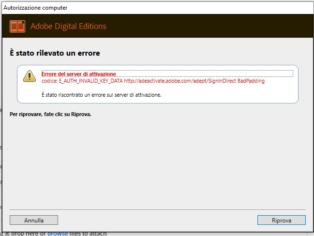 Impossibile attivare Adobe Digital Editions - Messaggio di errore su pc e mac