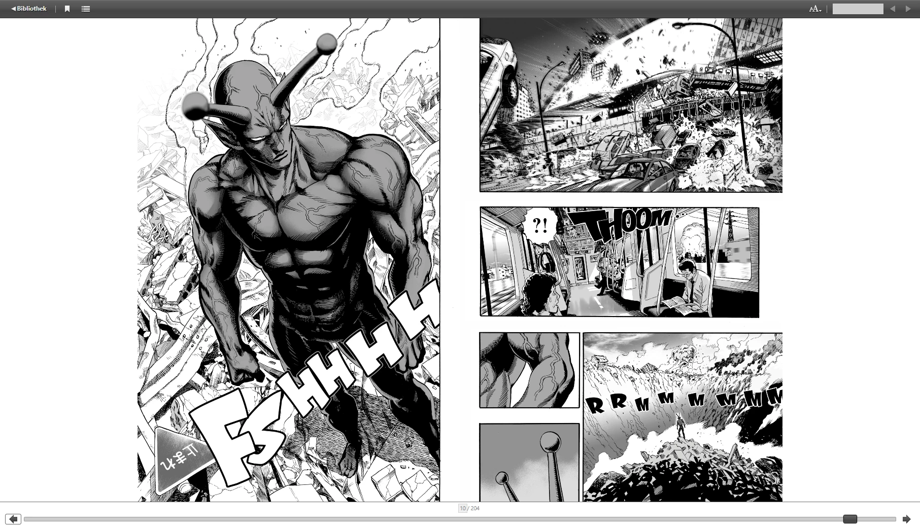 (two pages of the book "One-Punch Man Volume 1" (which I funnily enough also bought on Kobo); see viewer_working.png in the attachments).