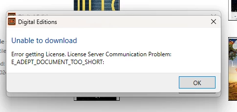 Licens server communication problem: E_ADEPT_DOCUMENT_TOO_SHORT