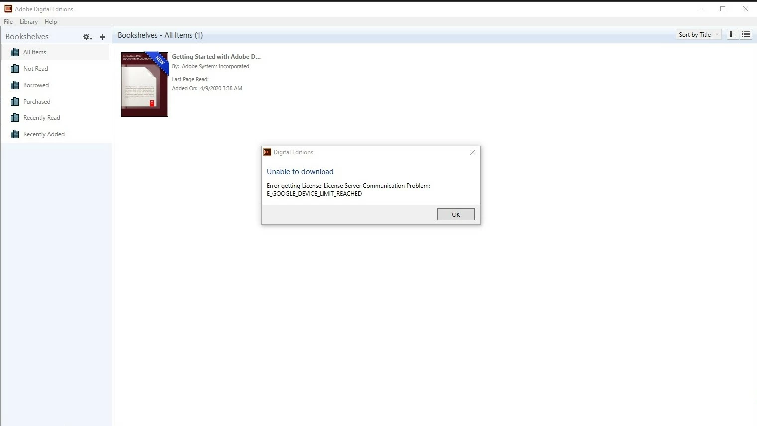 I just downloaded adobe digital edition and I haven't even made single transfer. But I still get an error. Please Help.