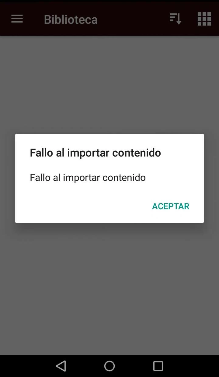 Quiero descargar un libro pero al abrir el archivo me aparece un aviso que dice "Fallo al importar contenido", Qué puedo hacer?