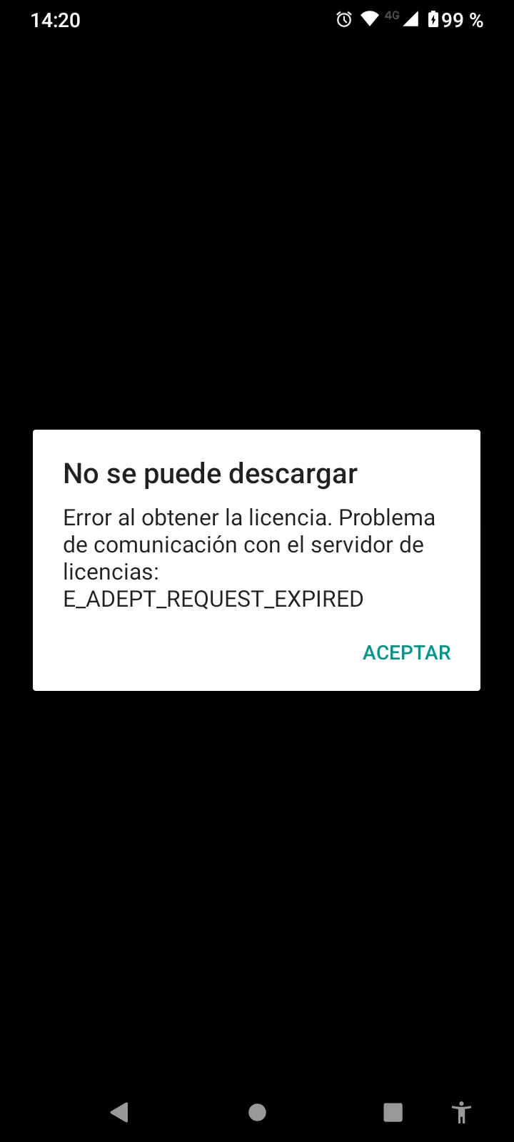 Error al obtener la licencia. Problema de comunicación con el servidor de licencias: