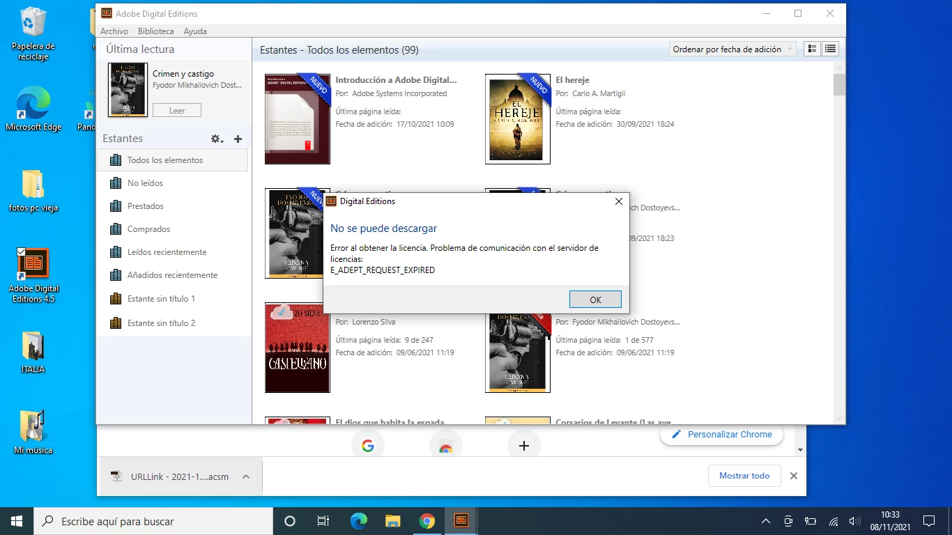 Compro un libro en la casa del libro, y cuando lo quiero pasar al Adobe Digital Edition me sale el siguiente error: