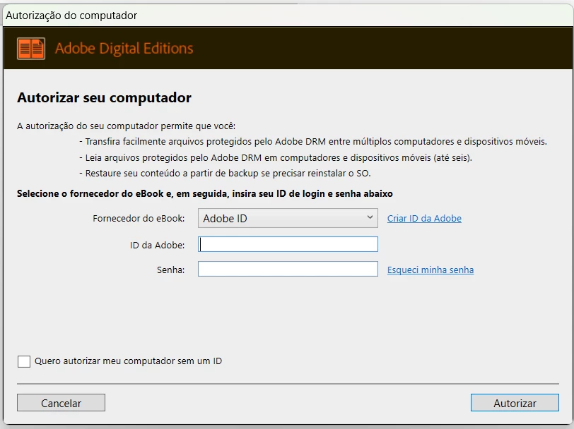 Se o login do Adobe é através do Google como sei a senha para autorizar o computador no adobe digital editions?