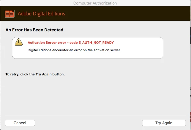 KkdschmeiserParticipantForum|Forum|6 years agoOctober 1, 2019QuestionUnable to Authorize ADEForum|Forum|6 years agoOctober 1, 20190 replies122 viewsHello, I am unable to authoize ADE and have attached the error message I continously receive. I have rebooted my computer twice now, however, still receive this error. Activation Server error - code E_AUTH_NOT_READY Thanks in advanceADE authorization