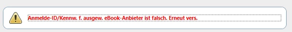"Incorrect login ID or password for the selected eBook vendor. Please try again"