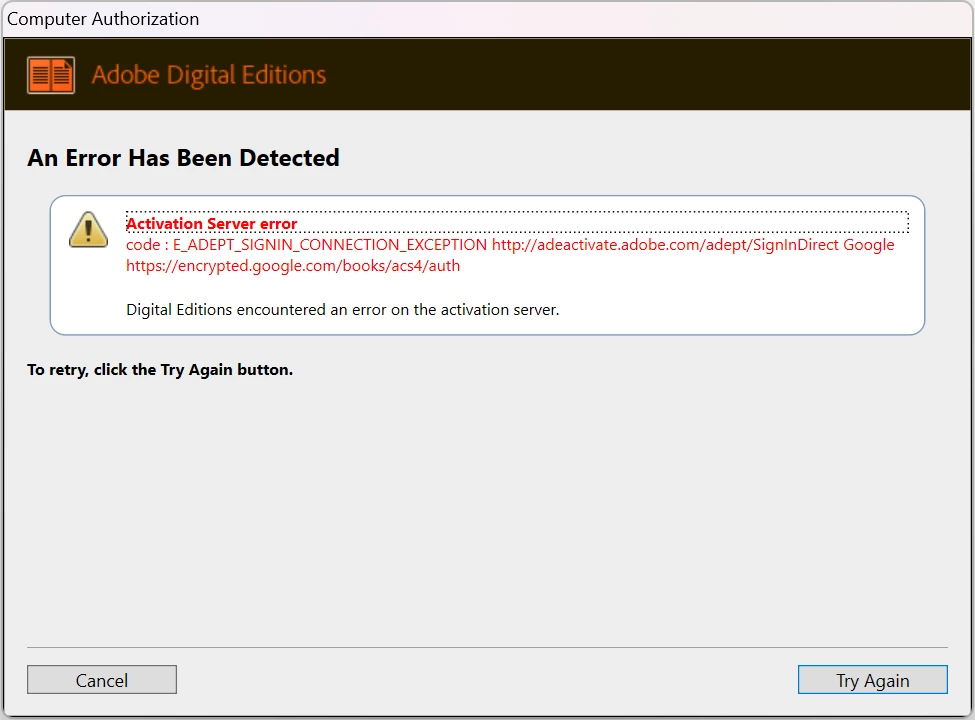 I can authorize fine through Adobe directly, but when I try authenticating with Google, Iget the following error: