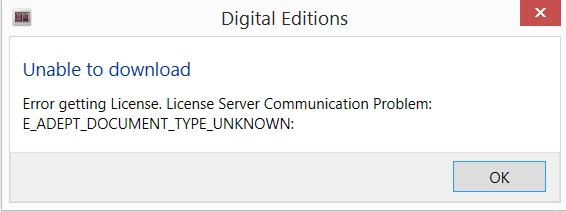 I'm using Windows 8 on a laptop. The following error message appears on my screen when I try to download an ebook: