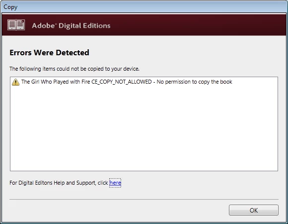Why does ADE think I have no right to copy a book I downloaded from the library?