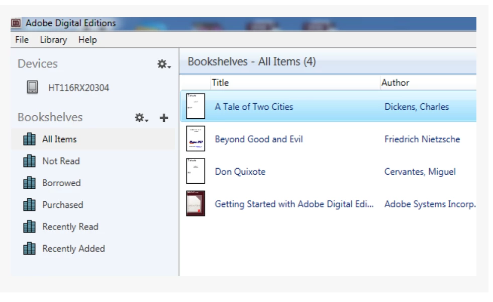 I have downloaded ebooks before using Adobe Digital editions using my device Gobii ereader. However when I downloaded ebooks today, opening Adobe digital editions my device is not visable.