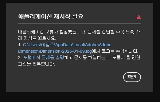 디멘션 실행하자마자 이런 경고창이 뜨는데 어떻게 해결해야할까요 ?